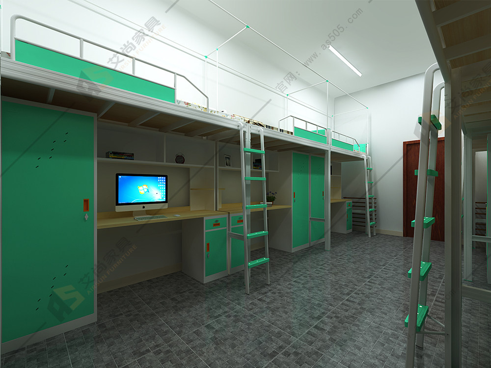 当然随着人们生活水平的提高,很多学校都在用学生公寓床了,他别是在深圳市这种一二线城市。这种学生公寓床是上床下桌式的,下面有事组合柜由物品架还有衣柜还有电脑桌,一遍学生能够在宿舍也能生活的精致,在宿舍学习也会很方便。