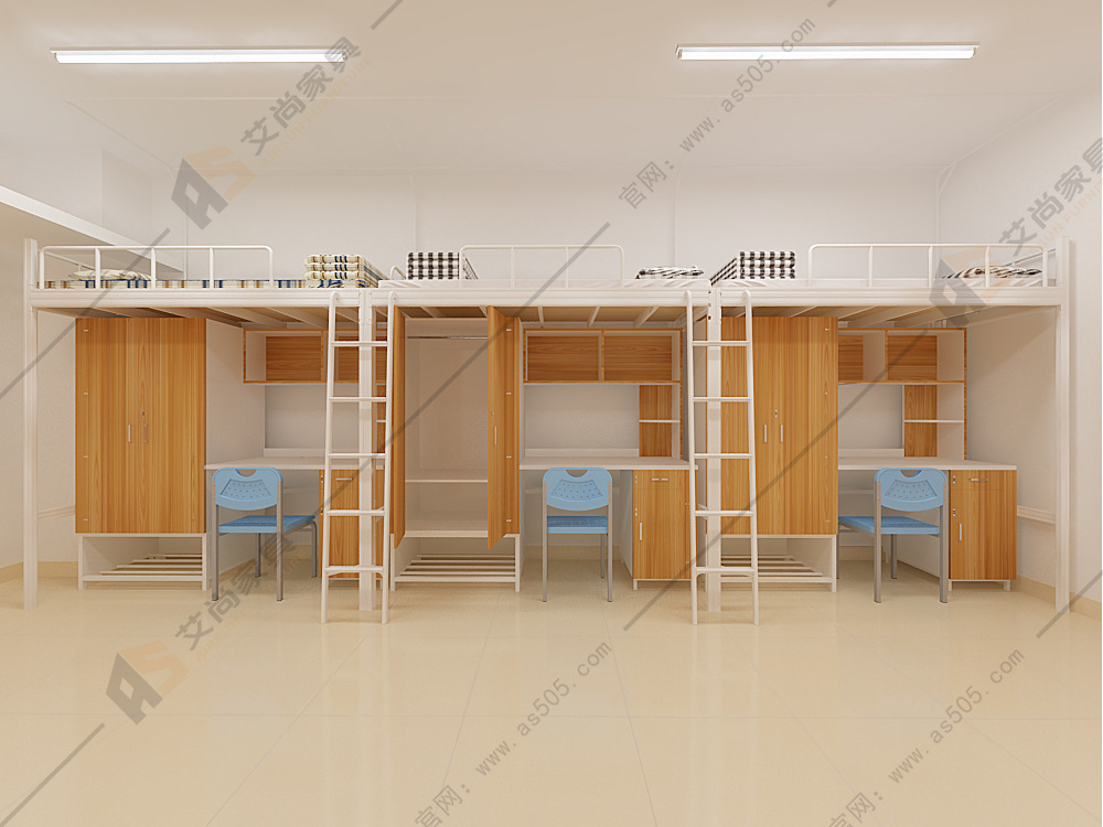 宿舍里有个东西占据了宿舍大部分位置,那就是宿舍床公寓床,这可能是宿舍的家具之一了,而且不会有之二的那种;宿舍床公寓床质量和款式就特别重要,它表现了这个宿舍好不好看,危不危险,够不够上档次。大学生了,一般宿舍都是四人间,六人间;而且都是上床下桌式的,注意这里的上床下桌,可不是单纯的上面一个床铺,下面放一张课桌。而是上铺有高达300mm的护栏,还有蚊帐杆可供挂床帘,大学总是要有隐私空间的;下铺是组合柜,有置物架有电脑桌有衣柜。像这种位置已经是标配了,很多学校宿舍都靠宿舍来招生呢,在宿舍床公寓床上下了很大的功夫。
