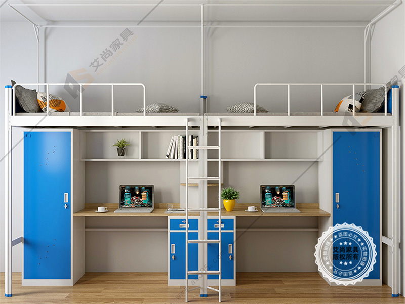 艾尚家具采用卡扣式的公寓床使得床在使用的时候静音与结实,加厚横梁设计,加高至235mm的护栏,楼梯滑纹设计,多细节多方面调整公寓床品质。横梁、立柱采用1.2mm厚冷轧钢轧制成型,卡扣连接处选用2.0mm厚冷轧钢冲压成型。