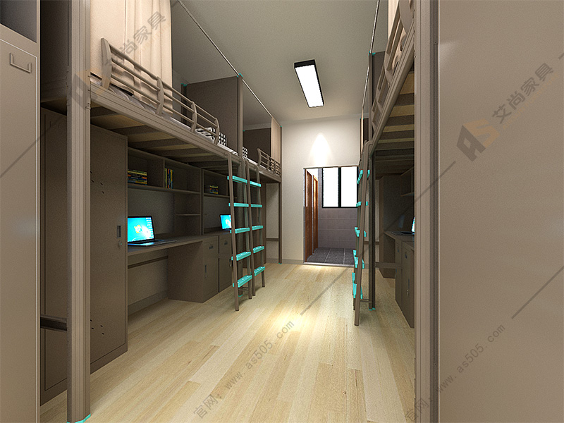 艾尚家具集体公寓床还经过酸洗、除锈、表调、磷化、静电喷粉、高温固化,6道工序加工,200度高温烘箱固化后,防腐能力变强,即使在潮湿环境中使用也不生锈。