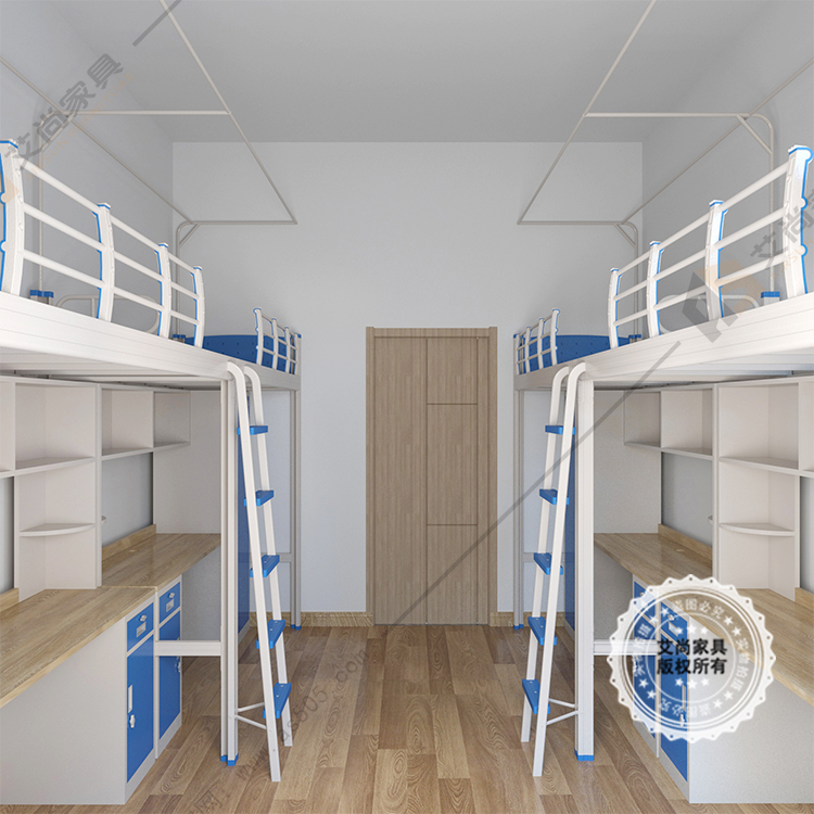 足够牢固安全的前提下艾尚家具所生产的学生宿舍床还附带了许多人性化的设计,235mm加高护栏,楼梯附有防滑纹,可根据要求增添置物柜或蚊帐架等额外设计,确保用户在使用学生宿舍床的时候安心舒心。
