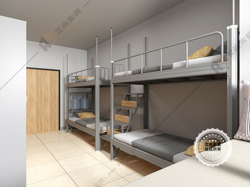 艾尚家具在制作员工铁架床的时,一直以高标准、严要求为规范,产品原材料为德国进口的优质冷轧钢,经压轧成型后,进行除油除锈、静电喷粉,经过这样的工艺后,就算摆放在潮湿的环境中也不容易生锈。产品成型后需经过严格的质量筛选,只有合格的产品才能送到客户手中,绝对不让劣质产品流出!