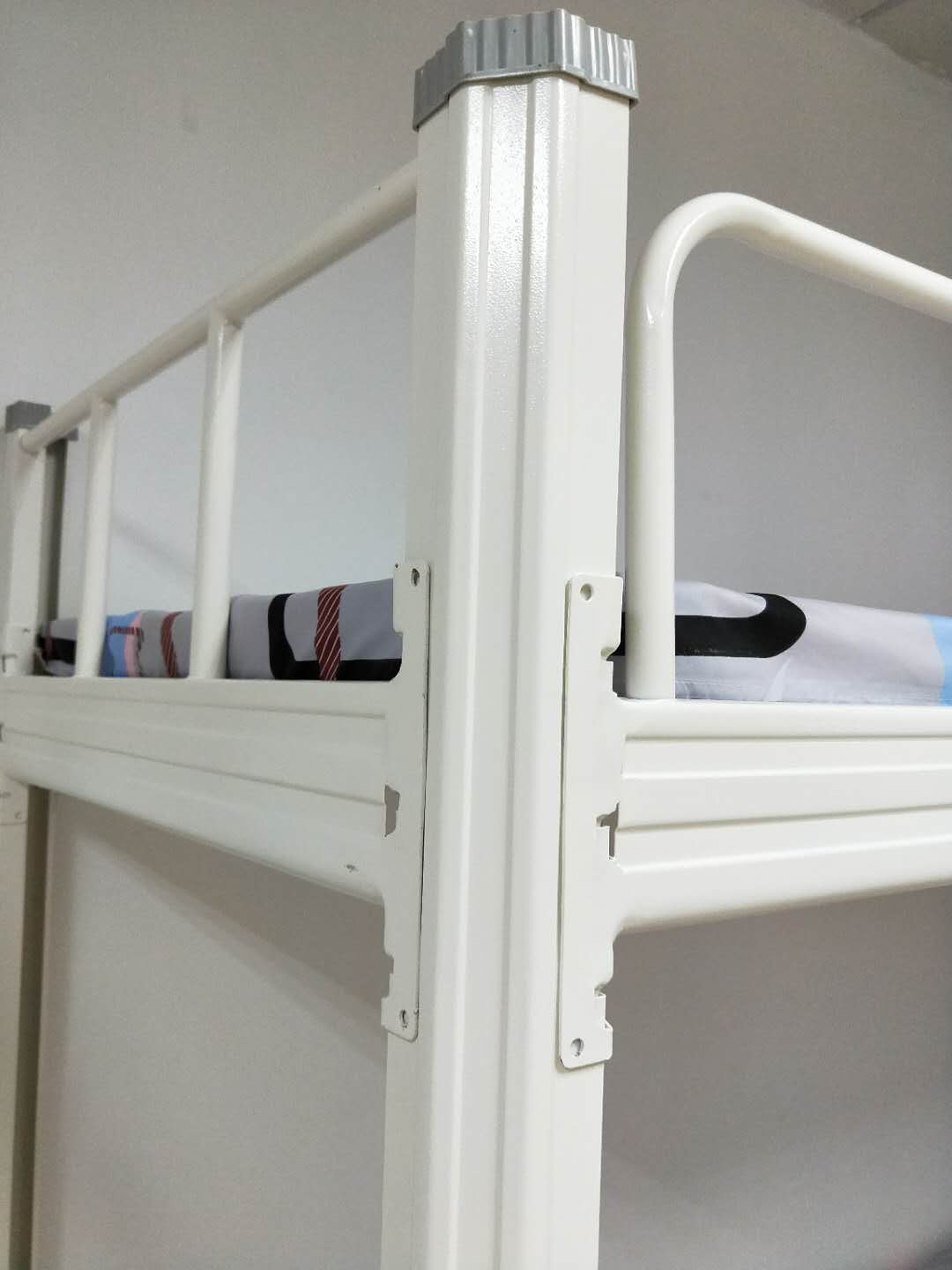 3.连接横梁。用上述方法,将立柱与横梁连接,连接后公寓床的基本样子就出来了。
