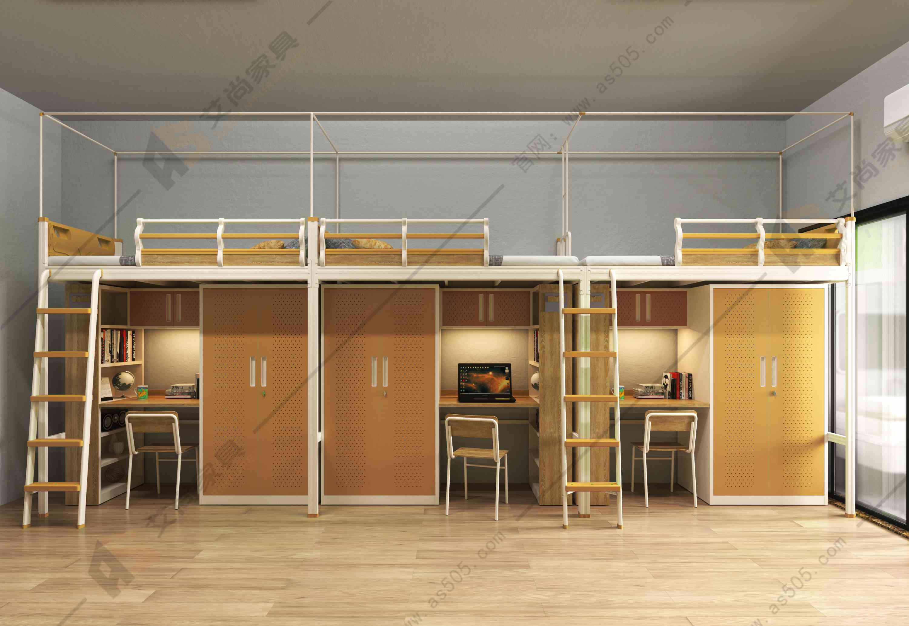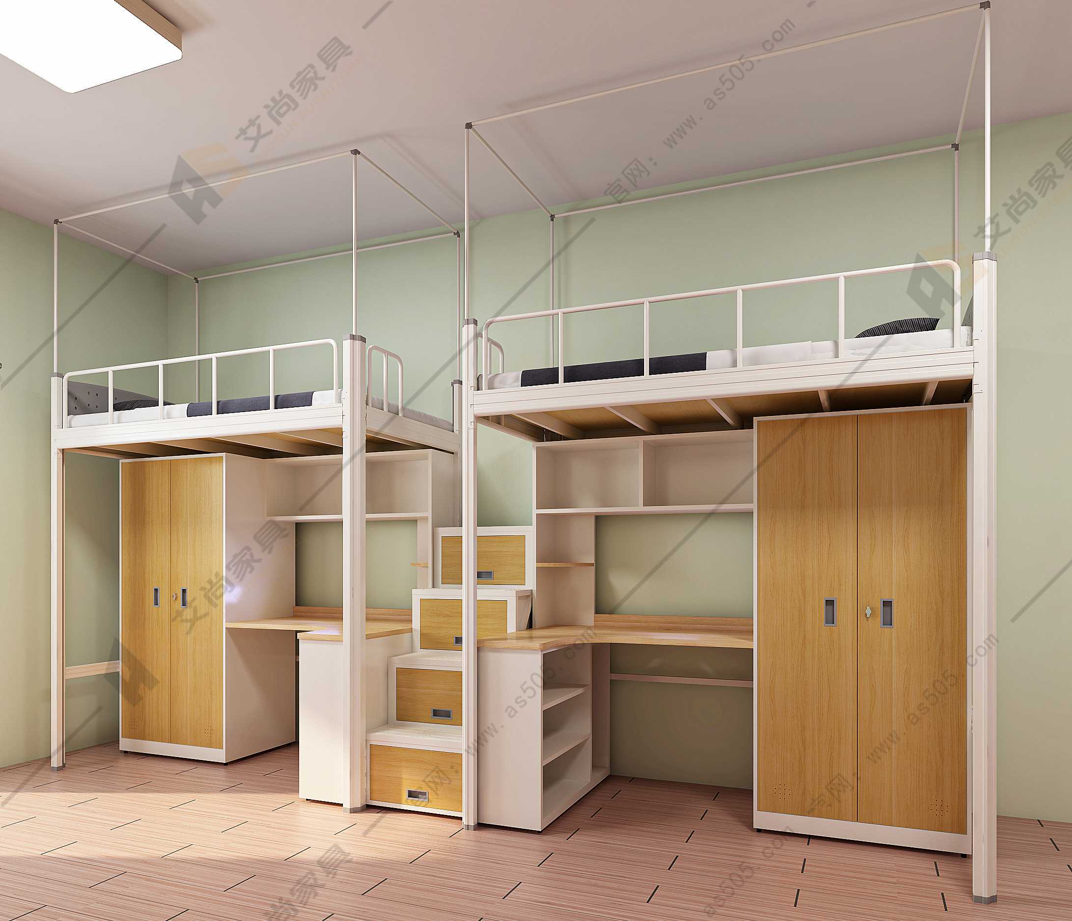 公寓床的设计充分利用了空间,非常适合集体宿舍居住,是很受学校和公司宿舍青睐的一款床。