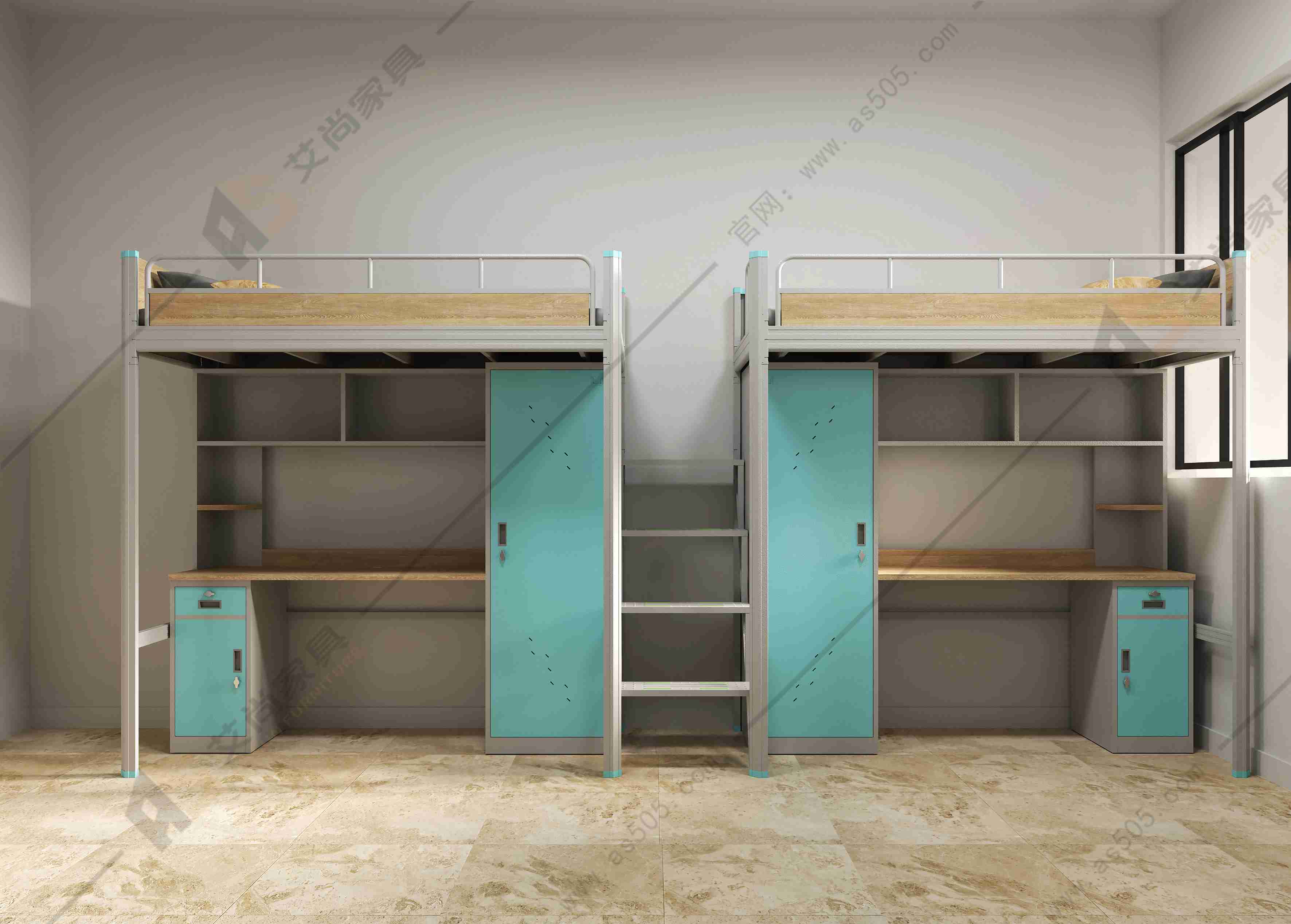 学生公寓床是专门为学校宿舍准备的,外观多采用青春的色彩,符合学生朝气蓬勃的精神面貌。公寓床的书桌和书柜不但满足了学生日常学习、娱乐,而且可以摆放书籍、小盆栽等物品,衣橱的分区设计,让收纳做到井然有序。