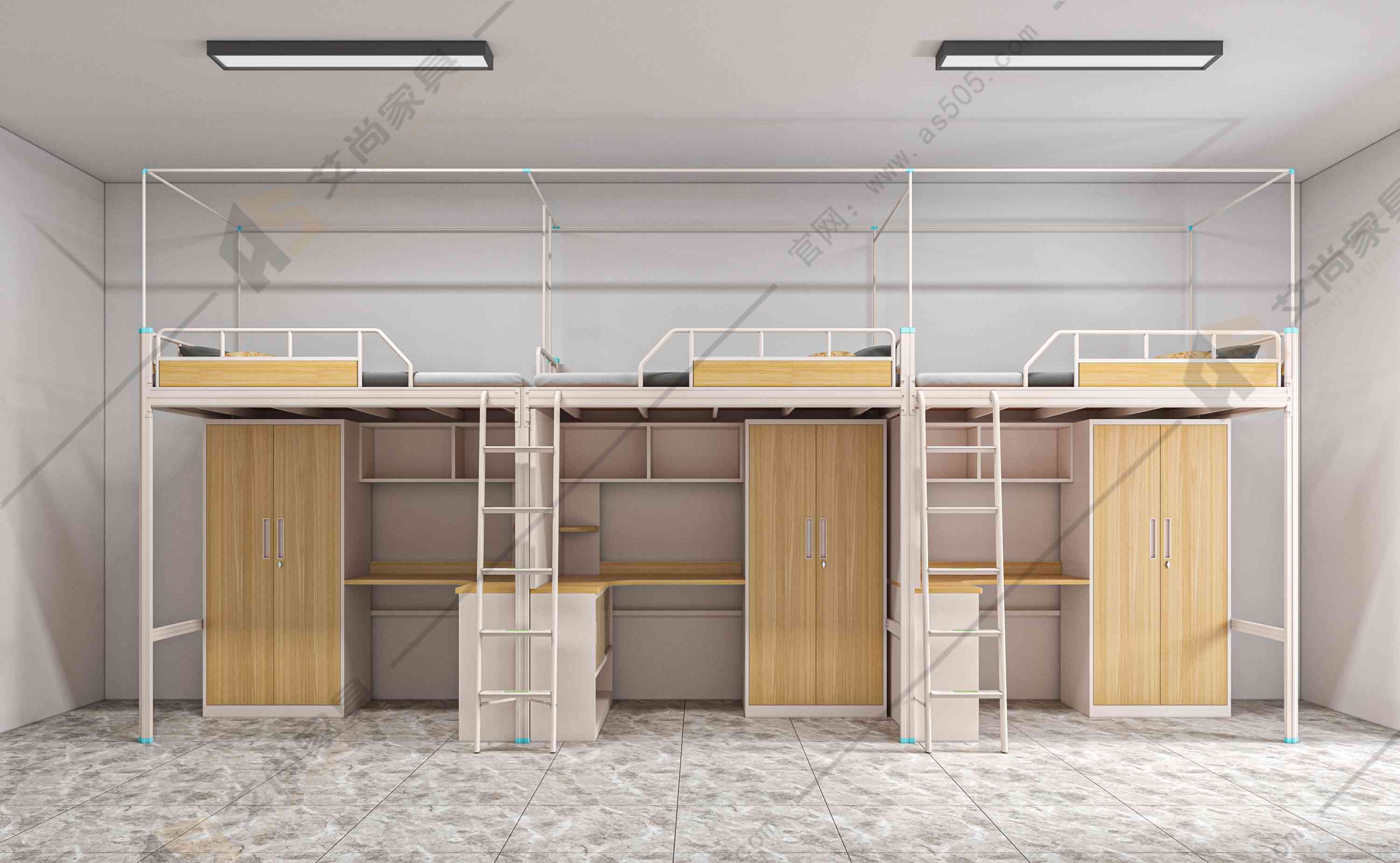艾尚学生公寓组合床的工艺严谨细腻,每一道工序都严格进行,每个环节都有专人检查。床架是使用冷轧钢来制作,质地更加坚硬结实。床体结构采用无螺丝卡式连接设计,连接处受力更牢固,用的越久越牢固。