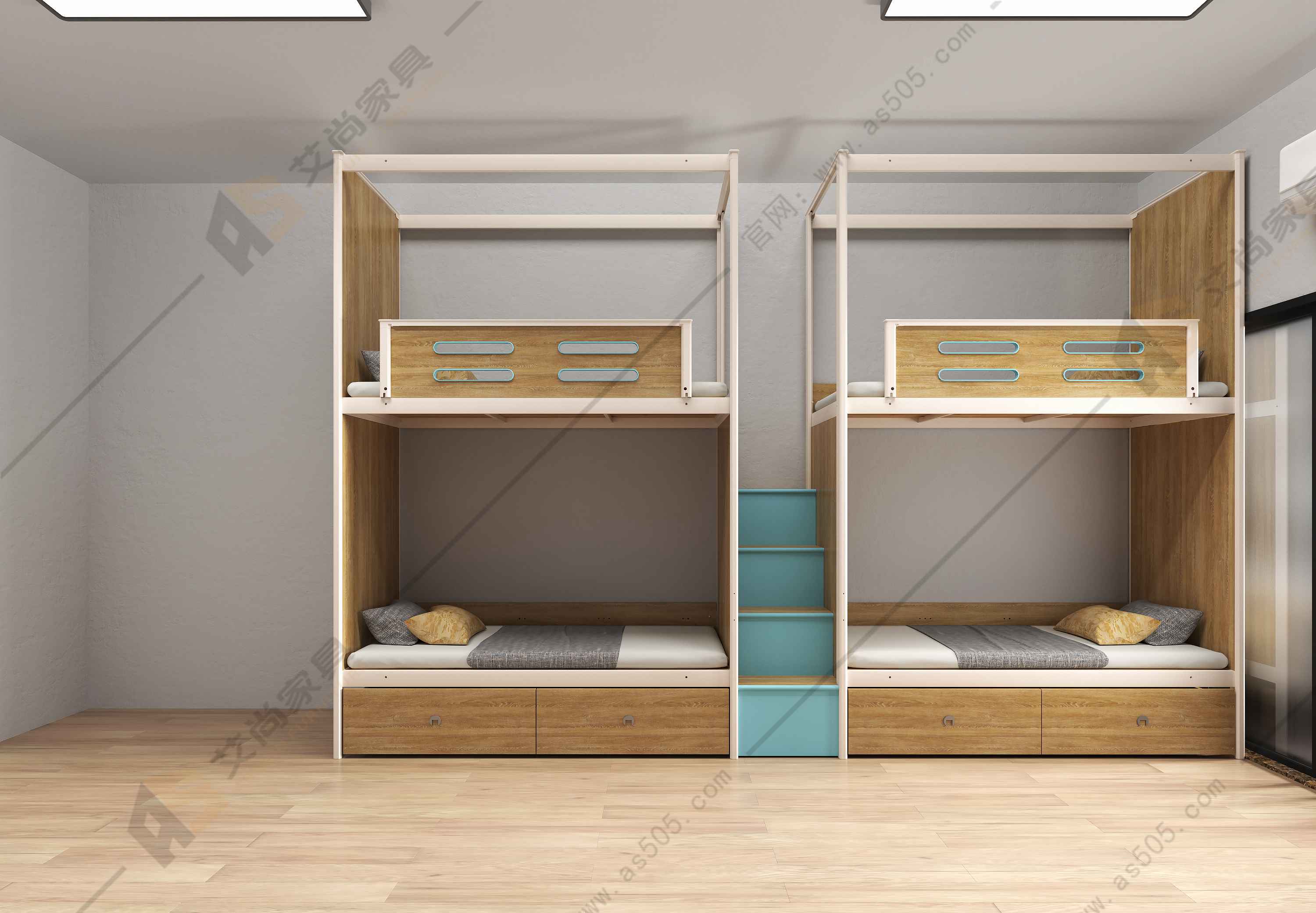 四、细节。宿舍双层上下铺不仅要稳固结实,更要在细节处多加注意,艾尚家具上铺护栏高度高于300mm,楼梯有凹凸防滑纹,配备夜光条,边缘处要用圆角做修饰,防止碰撞,割伤。这样的宿舍双层上下铺,你爱了吗?