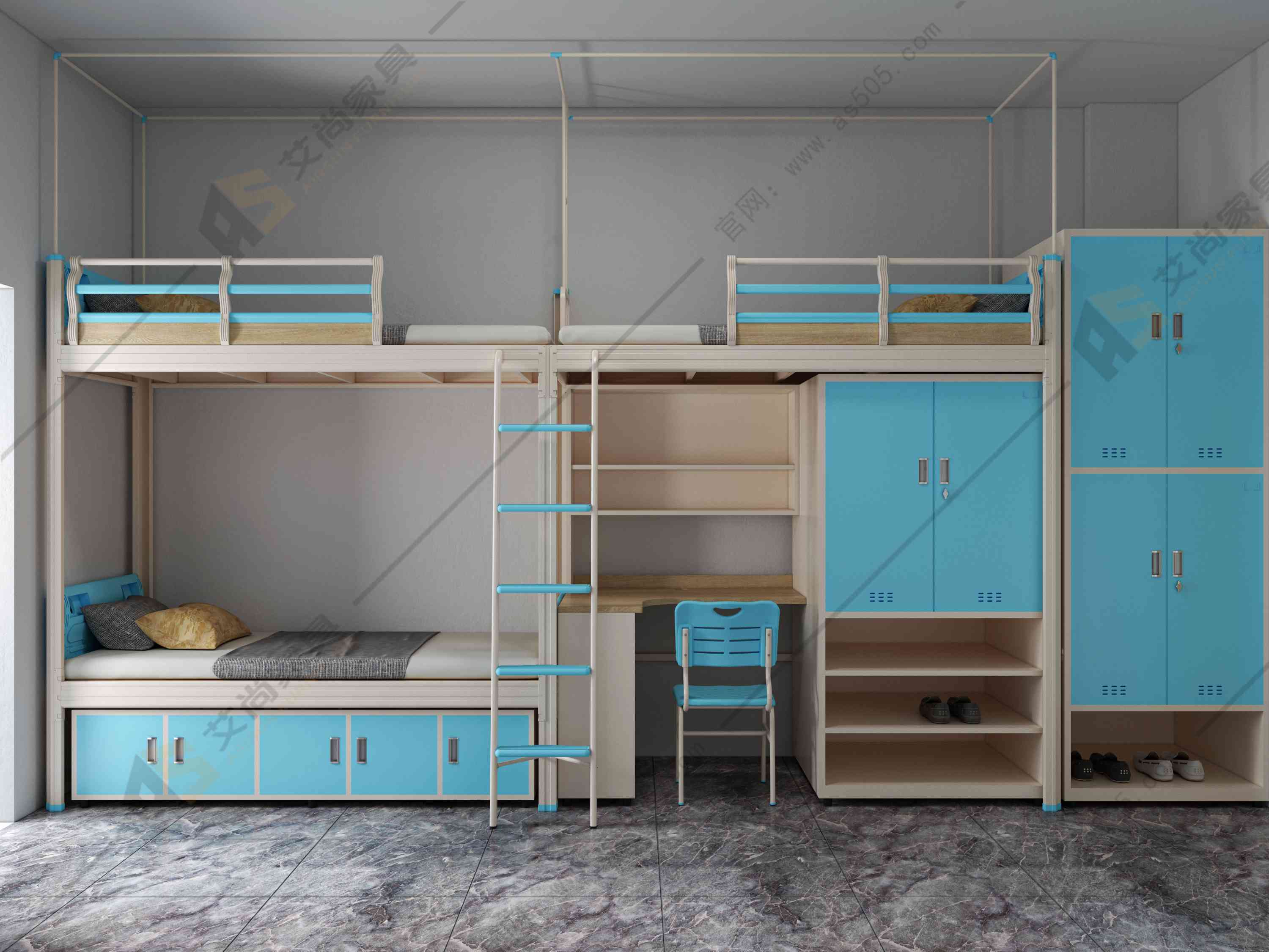 目前,宿舍公寓床流行的款式大体分为两种类型,一类是上床下桌带衣柜,一类是上下铺带书桌,而这两类当中又有许多不同的款式,艾尚可按客户需求定制宿舍公寓床颜色、款式、以及公寓床的配置。