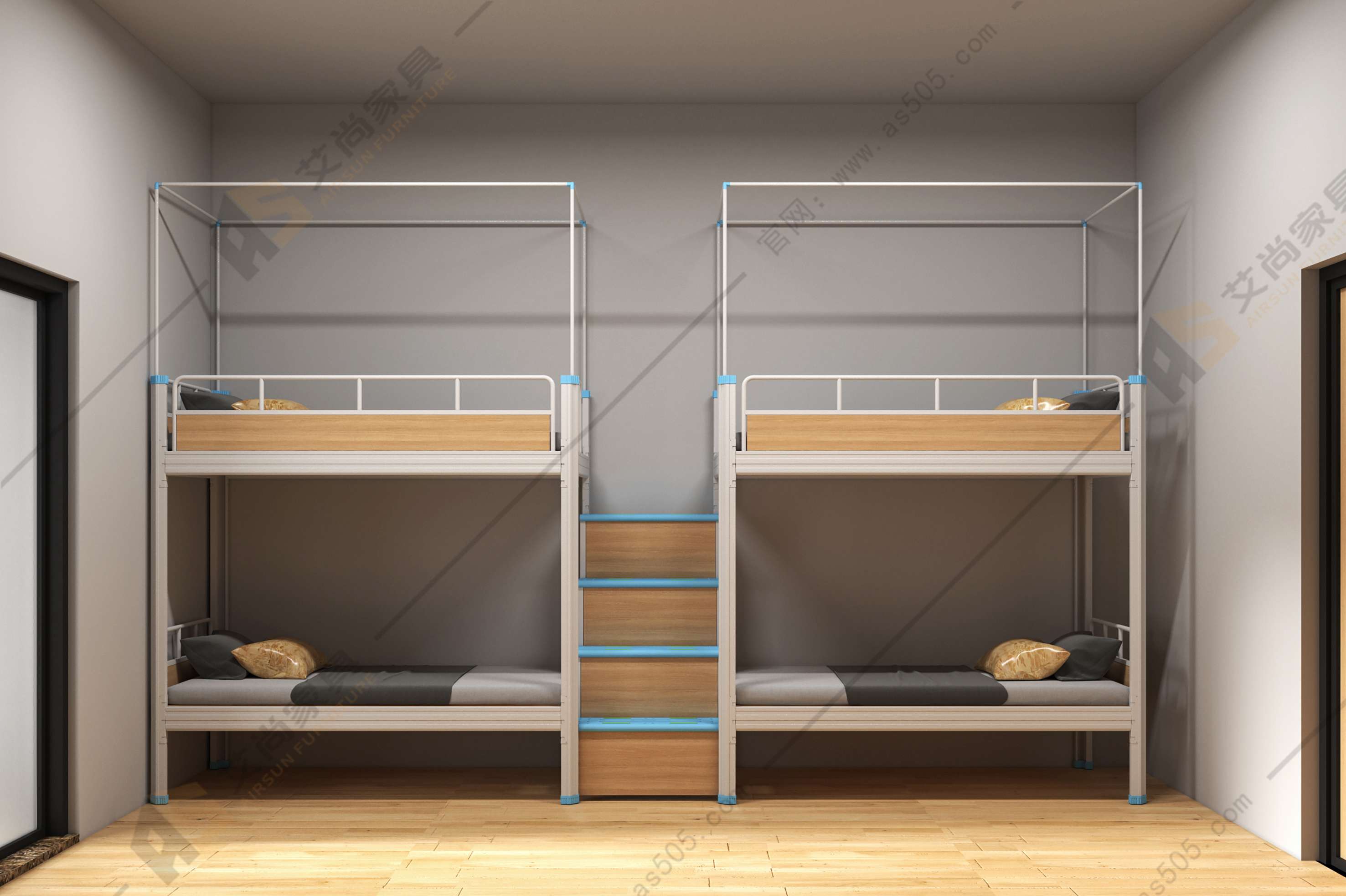 可定制性:艾尚双层上下床可以根据需求进行定制,包括尺寸、颜色、功能等等,艾尚家具可提供桌椅、衣柜等宿舍家具配套。