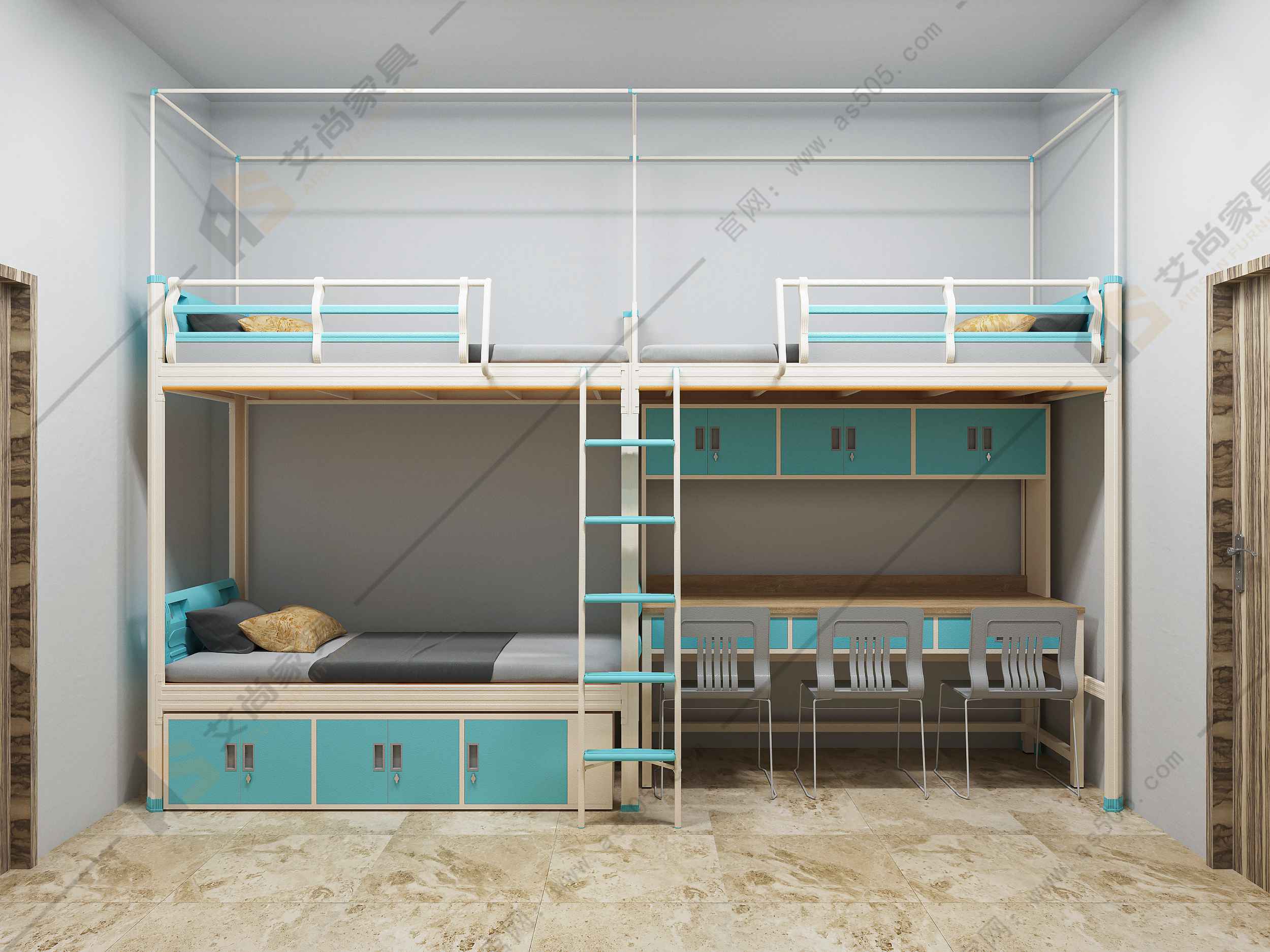 · 承重能力:了解并标注每张床的承重极限,确保能满足不同体重员工的需求,艾尚员工宿舍床能承受500公斤的重量。