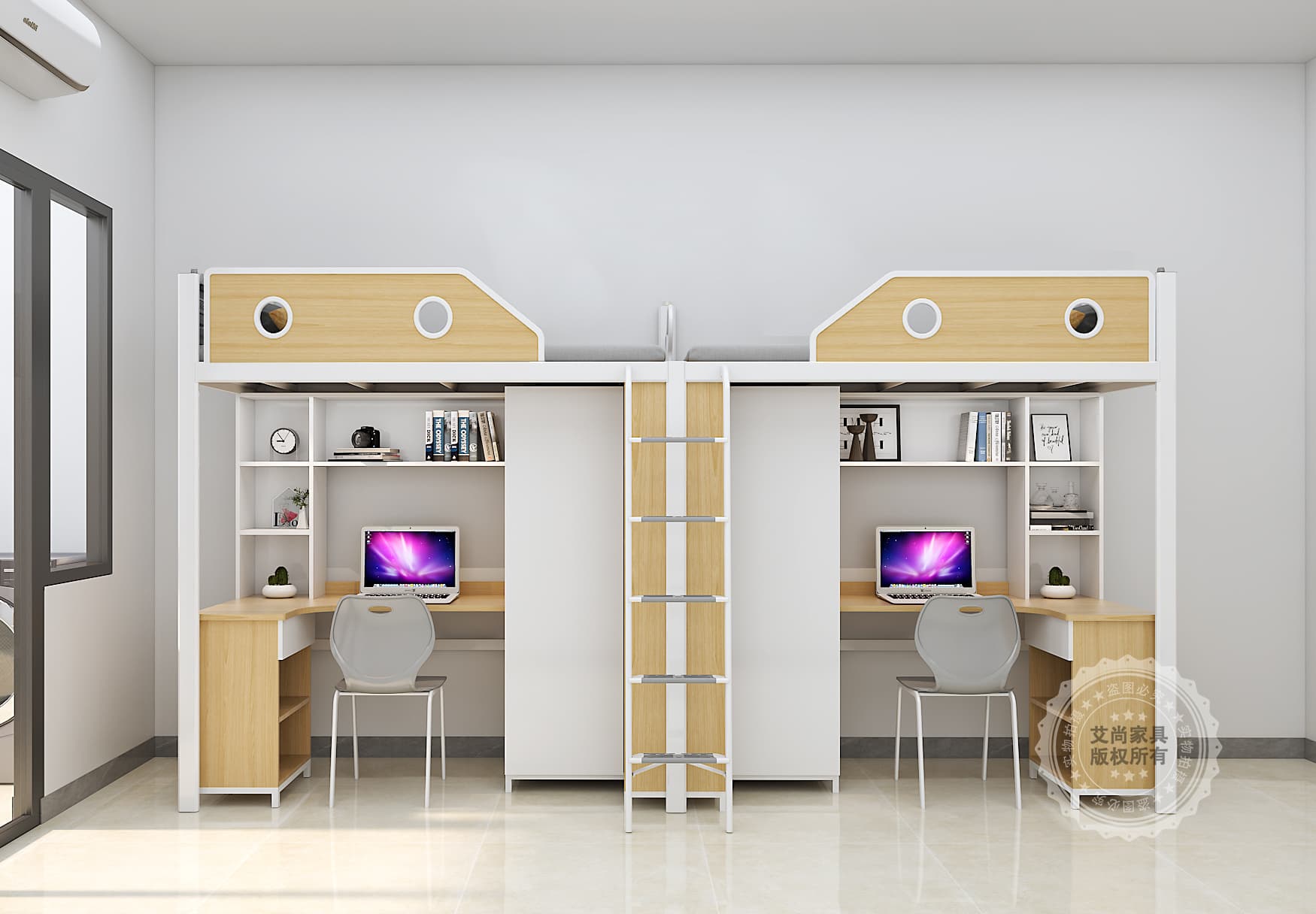 艾尚注重细节设计,如加宽床板、防滑护栏、静音结构等,提升员工睡眠质量。还可根据需求定制衣柜、书桌等配件,满足员工生活需求。