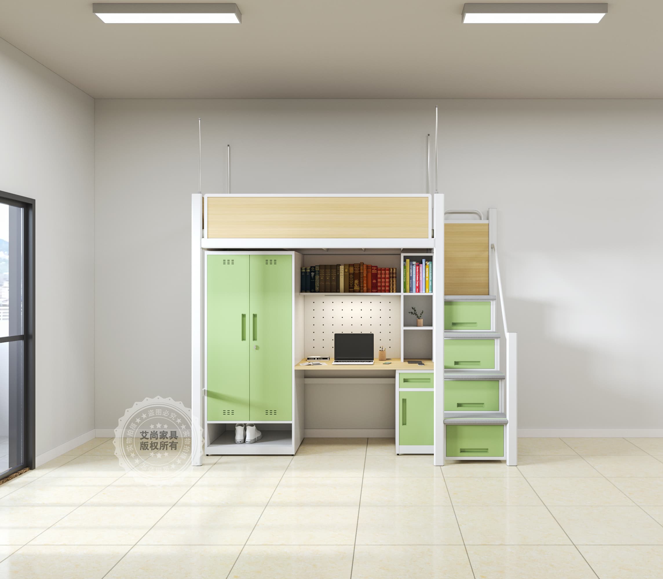 材料选用是公寓床品质的根基。床架主体采用优质冷轧钢板,厚度达 1.2mm,经过除锈、磷化处理,强度高、承重力强,单人床架静态承重可达 500kg 以上,确保长期使用不弯曲、不变形。床板选用多层实木板或环保胶合板,甲醛释放量符合 E1 级环保标准,无异味污染,表面经过防滑耐磨处理,兼具透气性与承重性。护栏与爬梯部分采用加厚圆管钢材,护栏高度≥30cm,间距≤15cm,爬梯踏步配有防滑橡胶垫,从源头规避安全隐患。所有金属配件均为镀锌或不锈钢材质,防锈耐腐蚀,延长产品使用寿命。