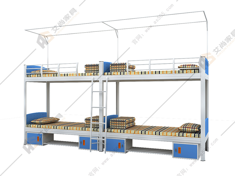 艾尚家具的宿舍家具都是可定制的,如果需要定制的客户我们会有专门的人员去到现场测量房间尺寸,每测量一处都会与相关负责人员及时说出设计想法,也会一起讨论,尽量做到客户满意。艾尚家具宿舍床是全冷轧钢制造的!连接方式是卡式连接,不加螺丝,无噪音!如果客户需要我们也有配套的衣柜、鞋柜、床头柜、办公桌、椅子、床垫还有床板,这些都是客户自由选择搭配的,多种款式,花样配套!