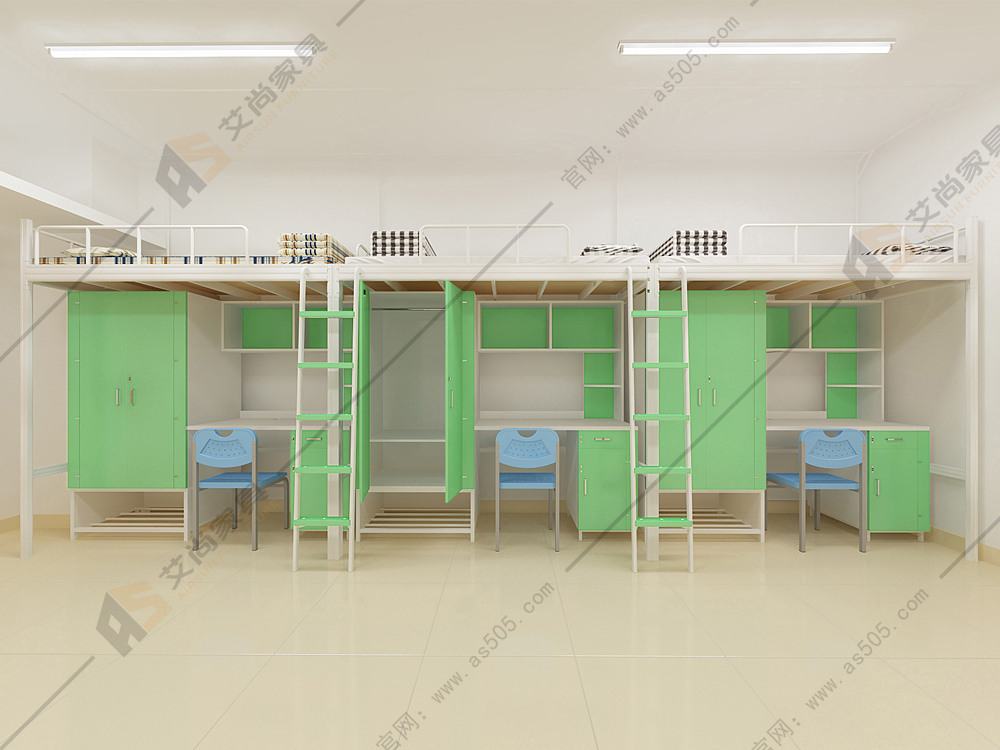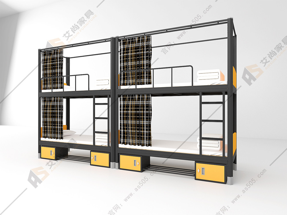 艾尚家具生产的学生上下铺床尺寸可定制符合房型宿舍;护栏是全围的,护栏可设置为塑胶挡板护栏,铁网板护栏,木质挡板护栏,圆弧形护栏,不同材质不同价位,您可以自由搭配;满足您预算问题!楼梯自带防滑纹,楼梯可以为直梯,侧梯,中梯免攀爬式;楼梯脚踏板可以为中空吹塑塑胶踏板,可以设置夜光条,夜光圆点等夜光装置,同样不同款式不同价位!床自带蚊帐杆,简约式样式齐全!仅有一种我们是只做一样的,是我们中空异形材的材质,这种材质优越于方管圆管的床,所以我们就只做这一种材质的床。