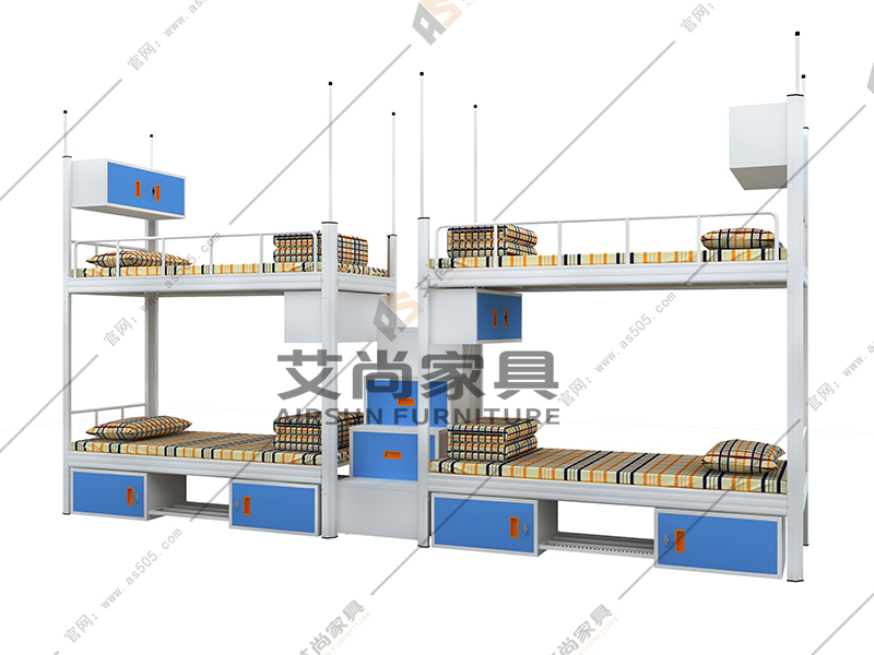 产品介绍: 连体侧梯双人位连体上下铺铁床,常规尺寸4480长*900宽*2080高mm(尺寸可根据客户要求定制),本产品颜色使用蓝色、桔纹色(颜色可按照客户喜好定制),原材料使用1.2mm冷轧钢板,床体承重500-1000kg!产品采用纸箱包装防止运输途中磨损,产品适用范围企业、单位、学校4-10人间宿舍均可适用。 本产品厂家质保十年!