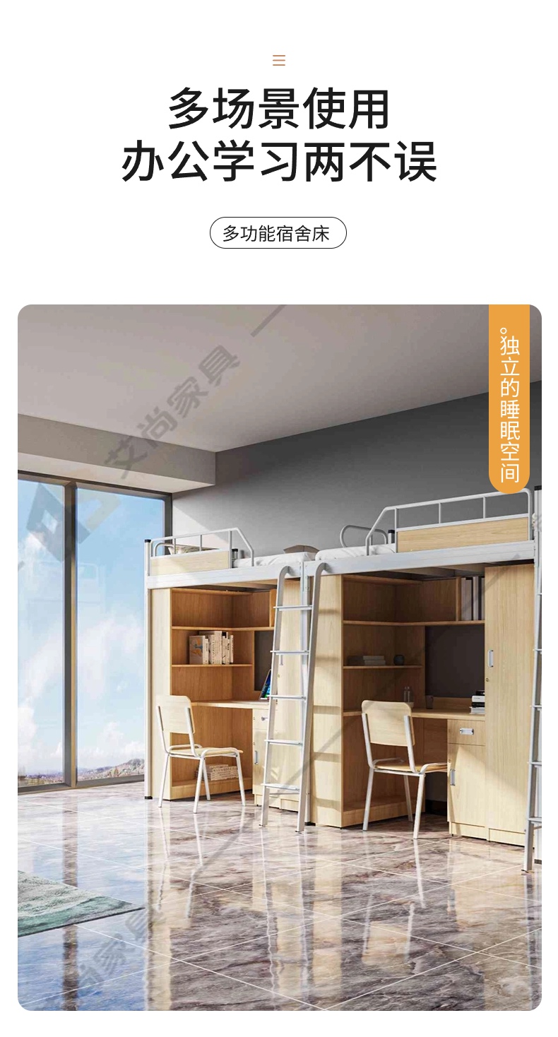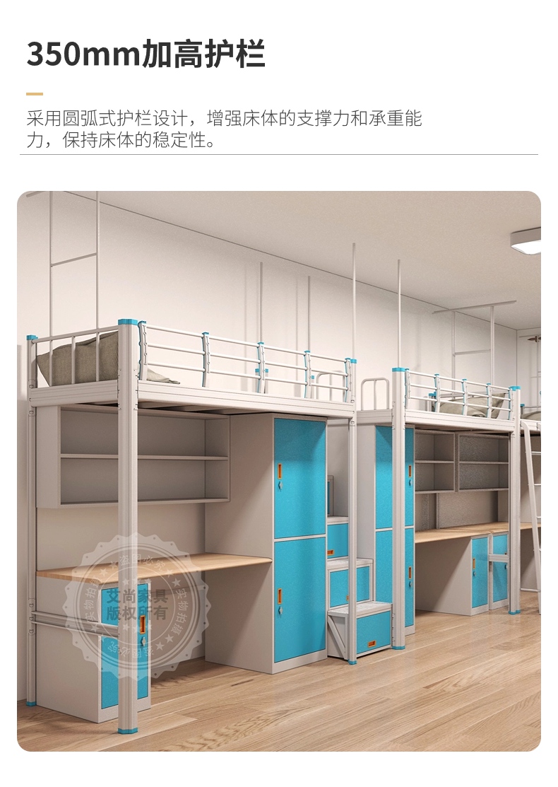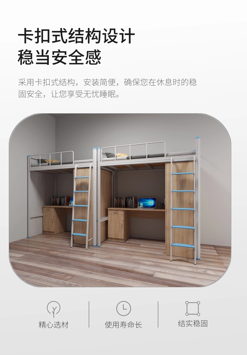 床架结构稳固不易变形,承重力好,床体承重力达500KG 根据人体工程学设计,上下舒适自如!