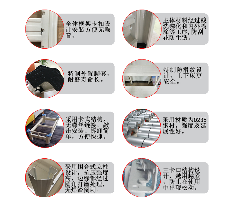 床架结构稳固不易变形,承重力好,床体承重力达500KG 根据人体工程学设计,上下舒适自如!