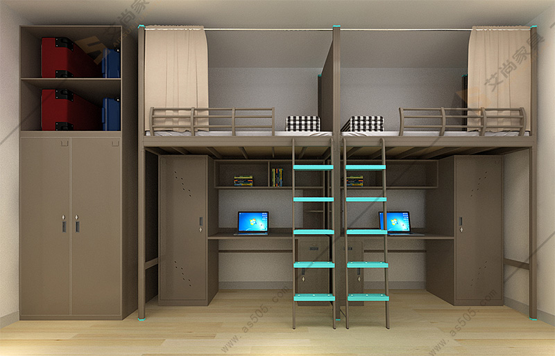 产品介绍: 两连体中梯双人位学生双层床,产品常规尺寸3930长900宽2100高mm(可按照客户宿舍需求定制尺寸),产品整体颜色:灰色床架搭配灰色柜子(可根据客户喜好定制颜色),床架:原材料采用优质冷轧钢板经特制成型线轧制而成,材料厚度为1.2mm(国标)床体承重500-1000kg!产品采用纸箱包装减少运输途中受损,产品主要适用于企业、工厂、学校4人间宿舍,本产品质保十年!