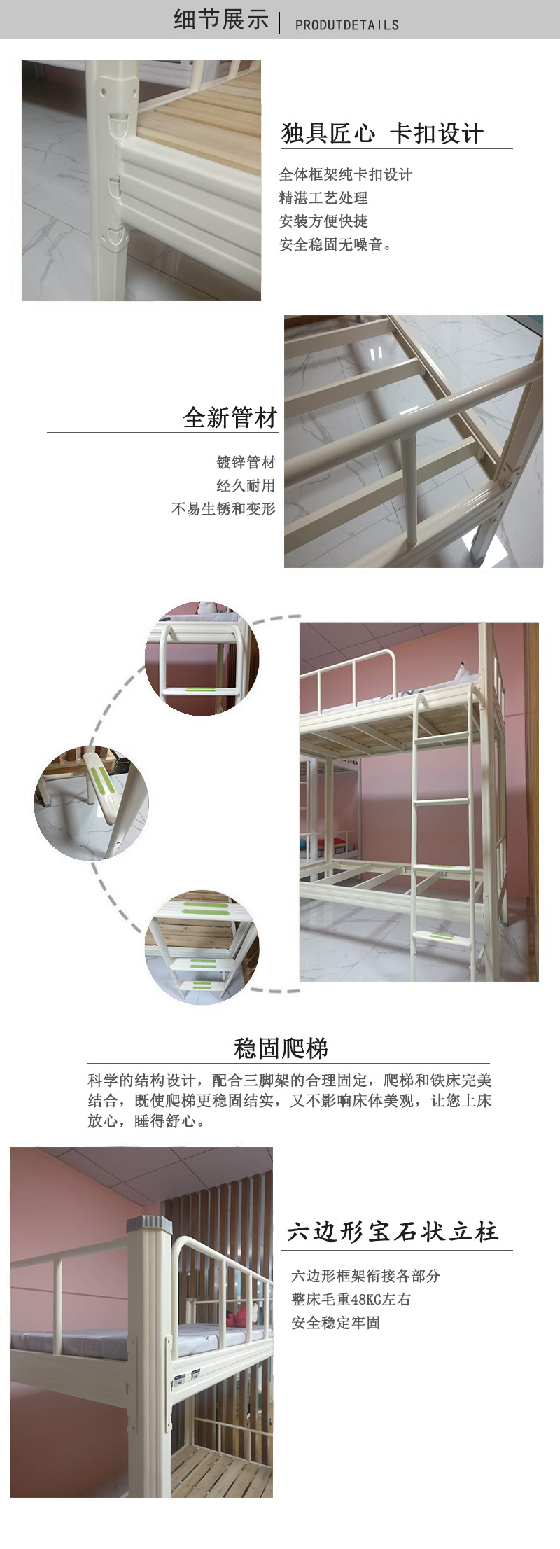 床架结构稳固不易变形,承重力好,床体承重力达500KG 根据人体工程学设计,上下舒适自如!