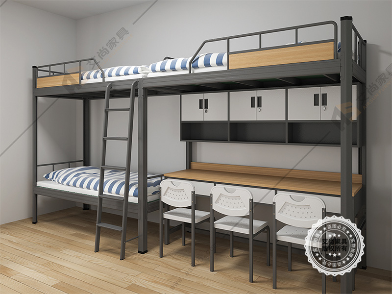 产品介绍: 艾尚家具连体双层床外观上高端大气,并且安全舒适。连体双层床采用环保0甲醛烤漆,无论闷热潮湿都恍然如新。 做工设计上,连体双层床采用卡口式连接,这种连接的优点在于承重性强,稳固性好,上床时非常平稳,不易摇晃,安全舒适,可以适应各种宿舍。