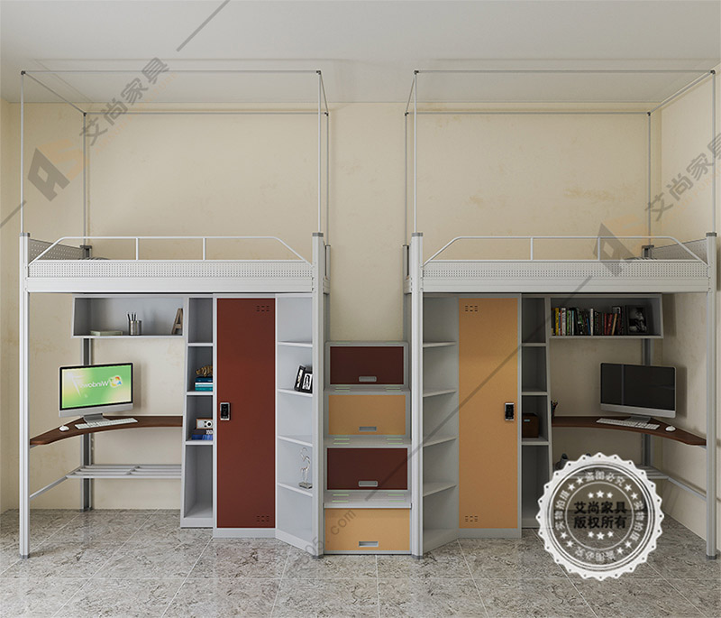 产品介绍: 艾尚家具外贸公寓床外观上高端大气,并且安全舒适。外贸公寓床采用环保0甲醛烤漆,无论闷热潮湿都恍然如新。 广东艾尚家具的推出公寓床都是采用无螺丝卡扣式衔接设计,利用重力向下,床架间的卡扣挂件就会向下与床架卡的越紧,用得越久越牢固,款式尺寸可以根据客户需求或宿舍空间专属定制。