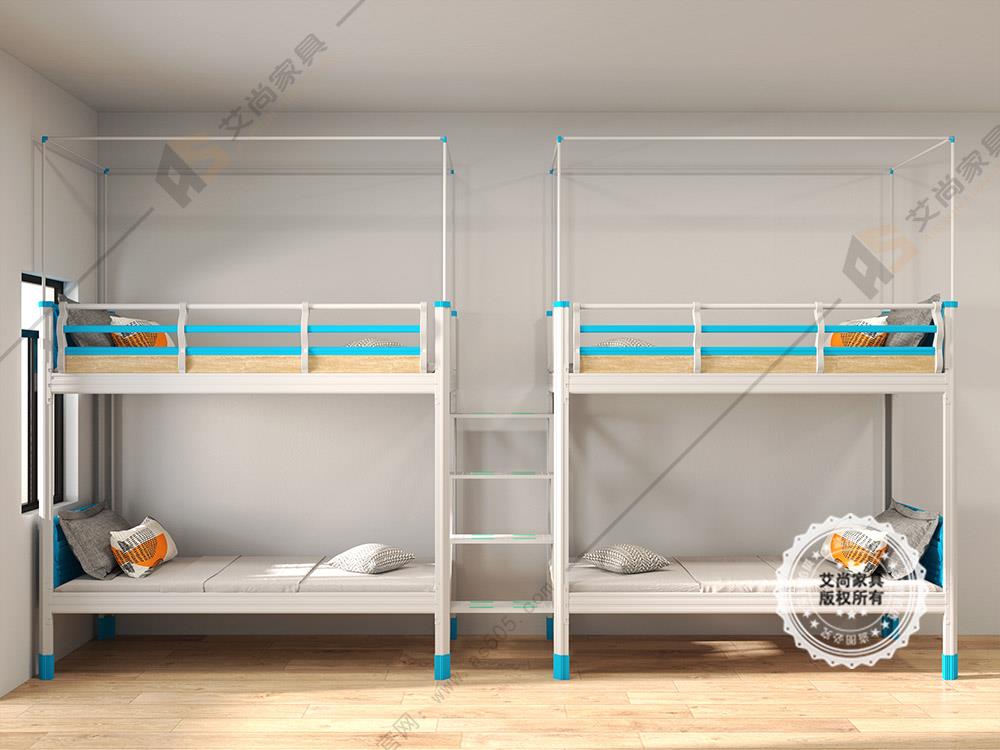 产品介绍: 艾尚家具学校宿舍上下铺床外观上高端大气,并且安全舒适。学校宿舍上下铺床采用环保0甲醛烤漆,无论闷热潮湿都恍然如新。 做工设计上,学校宿舍上下铺床采用卡口式连接,这种连接的优点在于承重性强,稳固性好,上床时非常平稳,不易摇晃,安全舒适,可以适应各种宿舍。