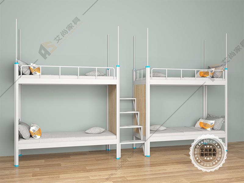 产品介绍: 艾尚家具双层床上下铺外观上高端大气,并且安全舒适。双层床上下铺采用环保0甲醛烤漆,无论闷热潮湿都恍然如新。 做工设计上,双层床上下铺采用卡口式连接,这种连接的优点在于承重性强,稳固性好,上床时非常平稳,不易摇晃,安全舒适,可以适应各种宿舍。