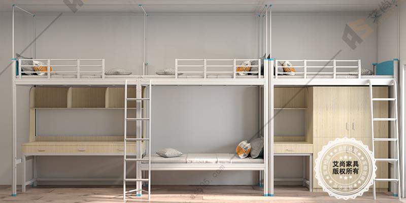 产品介绍: 艾尚家具学生连体公寓床外观上高端大气,并且安全舒适。采用环保0甲醛烤漆,无论闷热潮湿都恍然如新。 做工设计上,南雄公寓床采用卡口式连接,这种连接的优点在于承重性强,稳固性好,上床时非常平稳,不易摇晃,安全舒适。