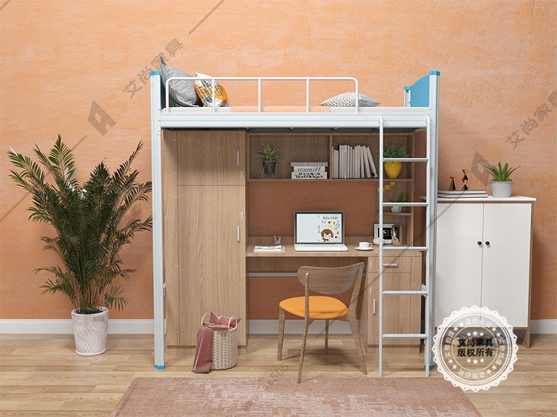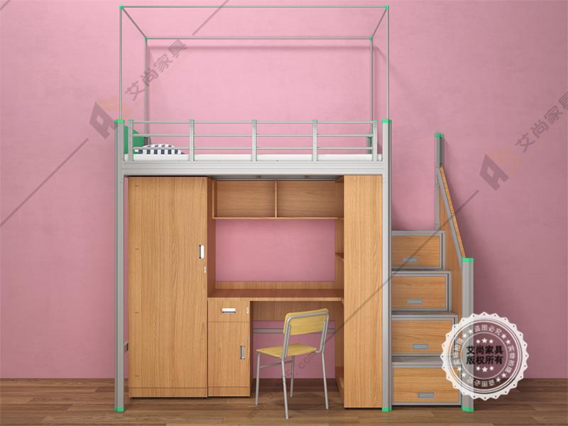 产品介绍: 艾尚家具钢木组合床外观上高端大气,并且安全舒适。钢木组合床采用环保0甲醛烤漆,无论闷热潮湿都恍然如新。 做工设计上,钢木组合床采用卡口式连接,这种连接的优点在于承重性强,稳固性好,上床时非常平稳,不易摇晃,安全舒适,可以适应各种宿舍。