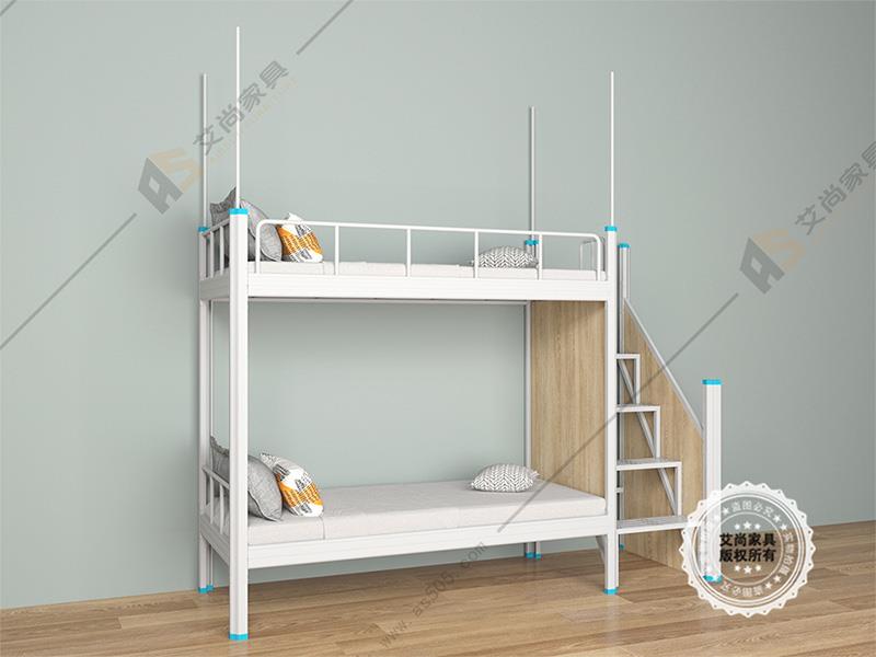 产品介绍: 艾尚家具单体双层铁床外观上高端大气,并且安全舒适。单体双层铁床采用环保0甲醛烤漆,无论闷热潮湿都恍然如新。 做工设计上,单体双层铁床采用卡口式连接,这种连接的优点在于承重性强,稳固性好,上床时非常平稳,不易摇晃,安全舒适,可以适应各种宿舍。